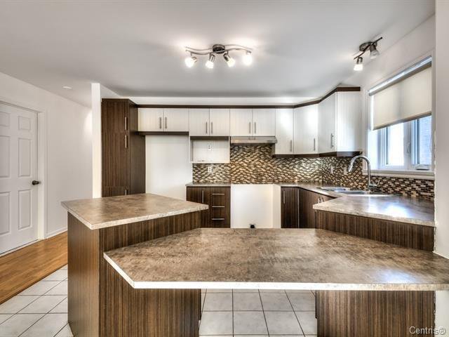 dosseret en céramique, évier double, comptoir-lunch et